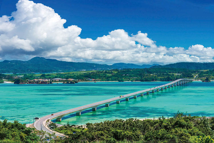 エメラルドグリーンの海を雲一つない青空を抱きながら渡る古宇利大橋の絶景は一生忘れられない思い出になるでしょう。